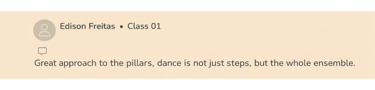 I love Fábio's classes and I learn a lot from him. My body, my dance and my life have been transformed since the first contact I had with him. I'm eternally grateful for everything I've been learning. I feel more sensitive to my dance, to my connection with the other and very happy to have gained so much autonomy and for always awakening the desire to learn more and more.